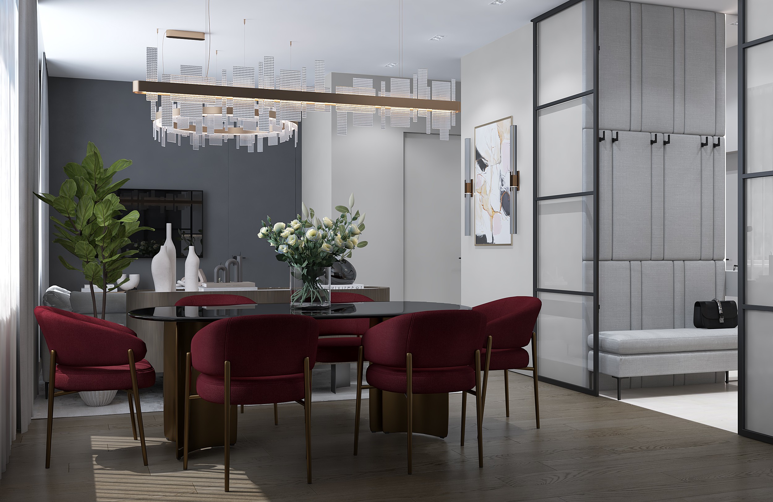 Моя студия — команда, разделяющая мой взгляд на дизайн. Мы создаём пространства, где семье комфортно, а бизнесу — вдохновляюще. Я формирую концепцию, визуализаторы передают атмосферу, технические специалисты отвечают за точность, менеджер — за порядок, а комплектаторы — за характер пространства.