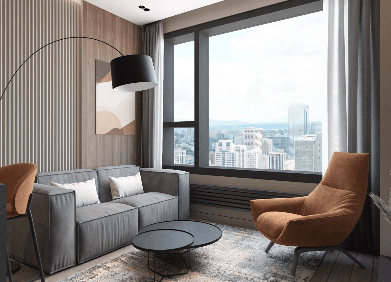 Квартиру в современном жилом комплексе «Небо» с потрясающим видом с 42го этажа заказчики приобрели для дочери-студентки. Задачей было спроектировать минималистичный интерьер в спокойных тонах.