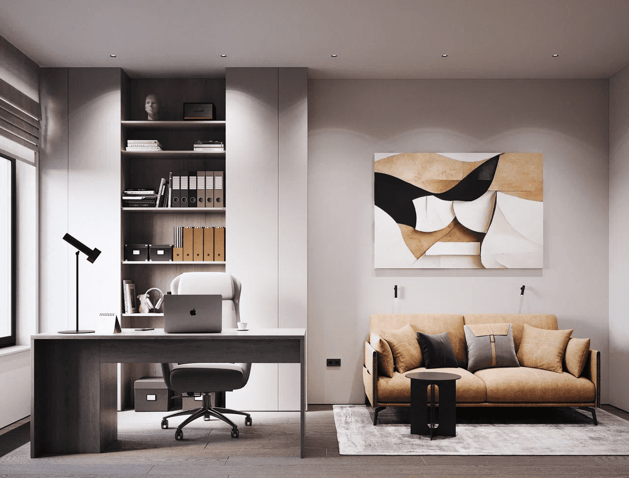 Заказчица работает с молодыми российскими художниками, поэтому мы вместе с ней подобрали предметы современного искусства и другой декор.